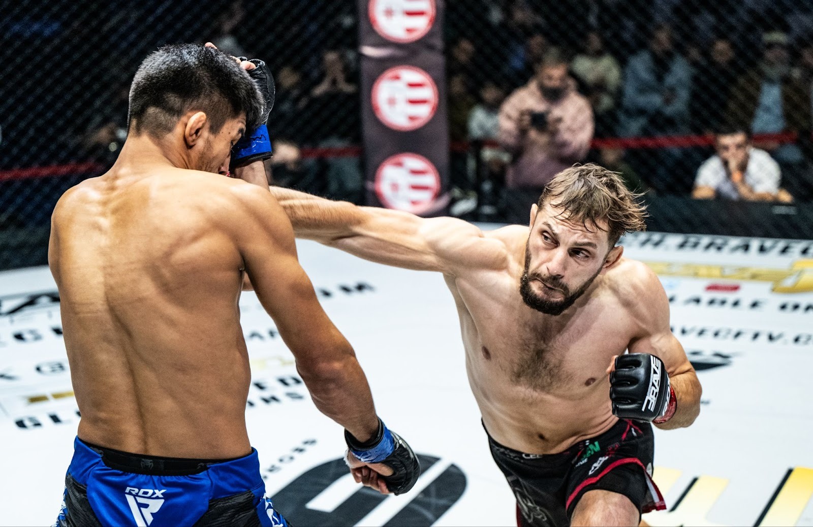 The following performance raised the volume even higher. Fighting in front of a roaring Georgian crowd at BRAVE CF: GEORGIA VS. THE WORLD in October, Abramishvili absorbed the atmosphere and converted it into a cage exploit.